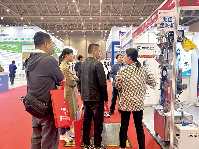展馆内人流密集,专业观众围绕展位仔细查看注塑机零部件的运行状态。各展位完整呈现从塑料原料处理到成品加工的全流程设备,观众可直观对比不同品牌设备的性能参数与工艺特点。