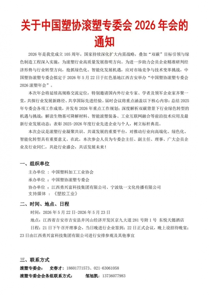 中国塑协滚塑专委会2026年会