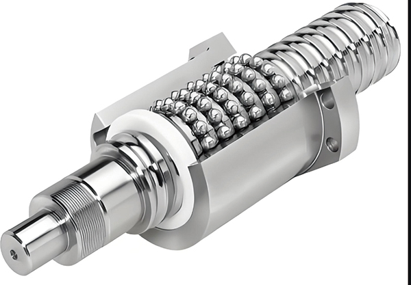 滚珠丝杆副在结构上主要由以下核心部件组成:丝杠轴,作为直线运动的导向轴,表面有螺旋槽结构。螺母,与丝杠轴配合,通过螺旋槽形成运动轨道。滚珠,在螺旋槽内滚动,实现低摩擦直线运动转换。反向装置,引导滚珠循环返回起点,形成闭环运动路径。预压组件,调节滚珠循环时的预紧力,提升系统稳定性。防尘装置,保护丝杠免受污染物影响,延长使用寿命。滚珠丝杆的剖面视图如图1。