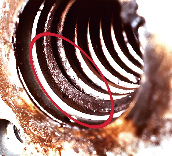 丝杆副运动精密、噪音低、精度高,已经广泛应用在各种场合,在某些运动场合下,丝杆副的运行载荷大、运行频率快,在高速重载工况下易因摩擦发热导致滚珠和丝杆和螺母滚道的金相变化进而丝杆性能下降,使用寿命短。另外,温度升高导致丝杆螺母密封件、滚珠隔离套等老化变形,进而滚珠的润滑导致滚珠和丝杆滚道磨损,产生不可逆的机械损坏。损坏的丝杆螺母图如图2。