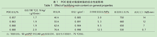 从POE类型及增粘树脂用量对黏性粒子综合性能的影响,温度和时间对保护膜的剥离强度的影响,以及胶含量对剥离强度的影响,对不同基材的黏性,开卷性以及耐候性等性能的影响,考察了POE热熔胶在保护膜中的性能和应用。
