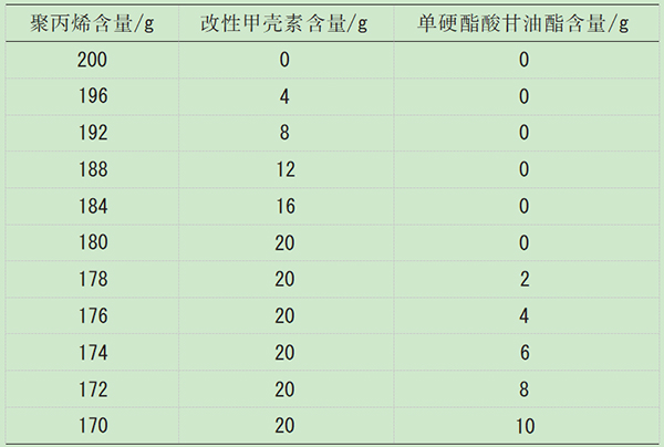 Tab.1 Preparation ratio of polypropylene/modified chitin anaerobic biodegradation additives