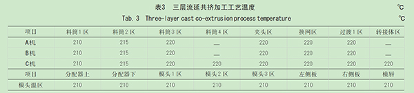 Tab. 3 Three-layer cast co-extrusion process temperature