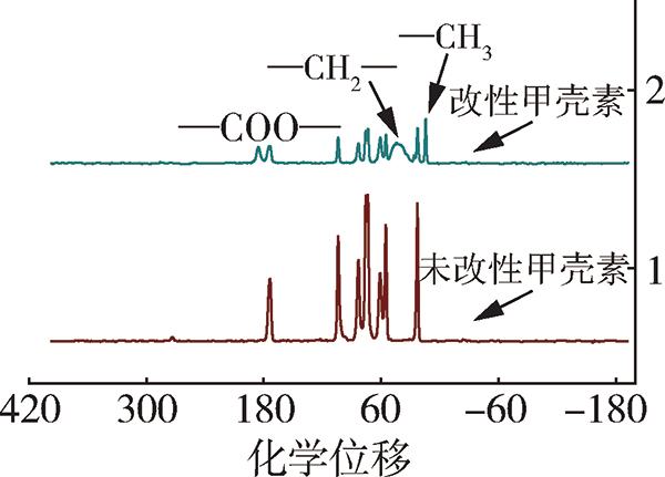 图3 改性前后甲壳素碳谱图