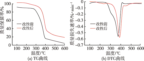 TG分析:样品通过热失重分析仪进行分析测试,在氮气环境下,温度范围为40~600℃,升温速率为10℃/min。