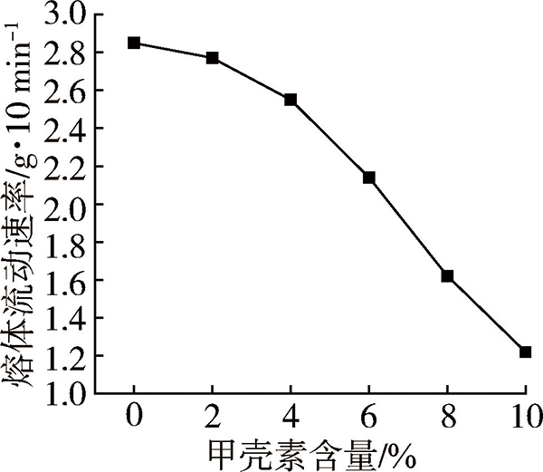 图7改性甲壳素对聚丙烯熔体流动速率的影响