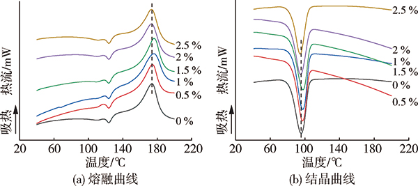 表6 薄膜中改性甲壳素含量对聚丙烯熔融结晶的影响