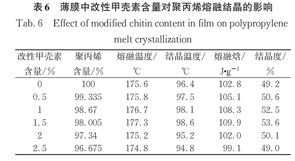 Tab.6 Effect of modified chitin content in film on polypropylene melt crystallization