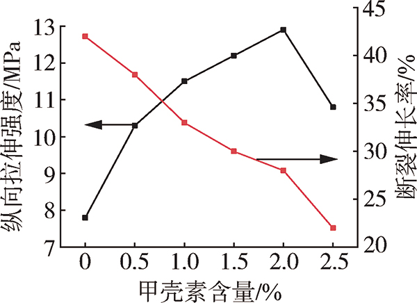 图11 改性甲壳素的添加对薄膜的拉伸强度和断裂伸长率的影响