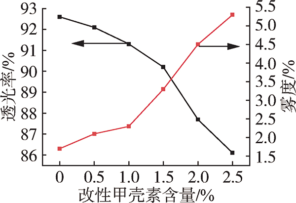 图12改性甲壳素的添加对薄膜透光率、雾度的影响