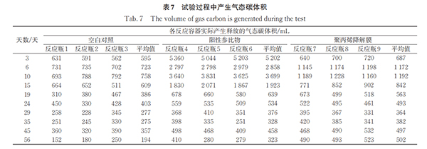 表7 试验过程中产生气态碳体积