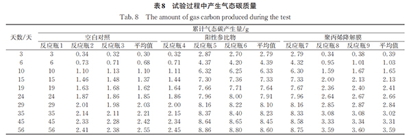 Tab.8 The amount of gas carbon produced during the test