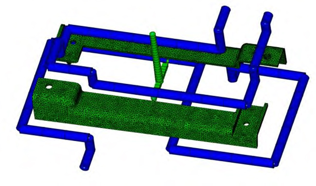 采用双层面网格,划分网格,得到26844个三角形网格,网格匹配率91.6%,没有自由边和重叠面,网格质量符合分析要求。