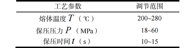 影响最终注塑成型结果的因素很多,根据文献[1,3,4]和以往经验,选取熔体温度(T)、保压压力(P)和保压时间(t)作为翘曲优化的研究因素。根据材料和经验,确定这3个工艺参数的整体调节范围如表2所列。