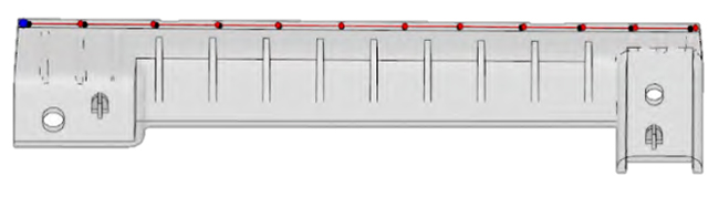 经过Moldflow分析后,如图3所示,在模型底部选取12个点测量翘曲量xi,通过下式,获得平整度fz作为Z向翘曲变形的衡量: