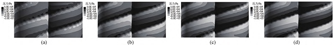 图5壁面滑移时,不同螺杆转速下,同向双螺杆挤出过程中的流道内压力云图