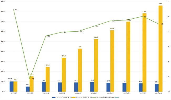 据海关总署数据,2025年10月,塑料制品出口额77.4亿美元,同比下降9.8%;进口额13.6亿美元,同比下降6.4%。1-10月塑料制品出口总额857亿美元,同比下降1.0%;进口总额142.9亿美元,同比下降3.2%,贸易顺差714.1亿美元。当前,高附加值产品在出口中的比重持续提升,传统劳动密集型产品占比相应下降,这种结构性变化虽然短期内可能体现为增速放缓,但从长远看却是行业高质量发展的必经之路。