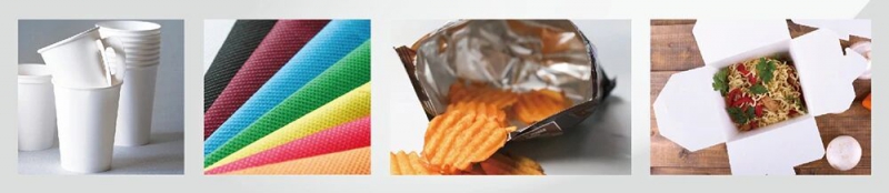 最常见的应用领域就是用于食品类的软包装材料,比如:盒装的牛奶果汁容器、零食饼干包装、纸杯以及餐盒内部,这些主要都是用于防油水渗透或是阻绝空气等作用。