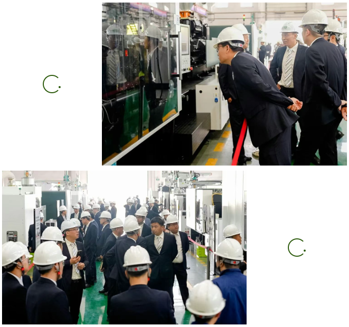 本次开放日以东华iSee4.0智能管理云平台为核心,11套覆盖注塑成型、自动化周边及数字化管理的高端集成方案同步投产运行,AI自主调度、闭环管控贯穿全流程。参观者可置身真实量产工况,直观体验东华机械在多个细分行业中的深度落地实践。