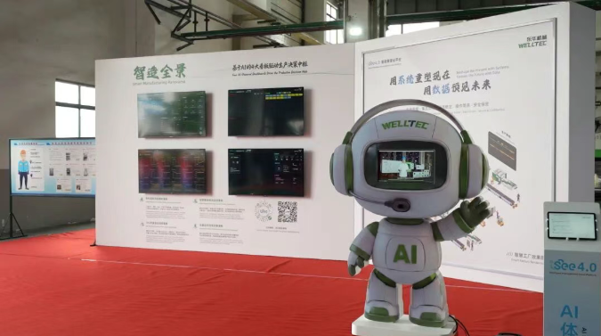 现场所有机器数据实时接入 iSee 4.0 智能管理云平台,生产监控、能耗分析与排程管理的实际运行状态一目了然,为参观者提供了智能工厂日常运营的真实参照。