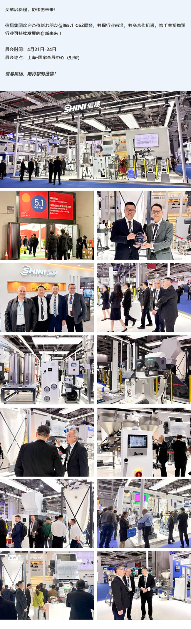 今日是CHINAPLAS 2026第二日,全球客商云集,现场热度不减。信易集团展台不仅有前沿技术动态演示,更有专业团队一对一提供定制化咨询,为不同规模企业量身打造高效、节能、智能的生产解决方案 。